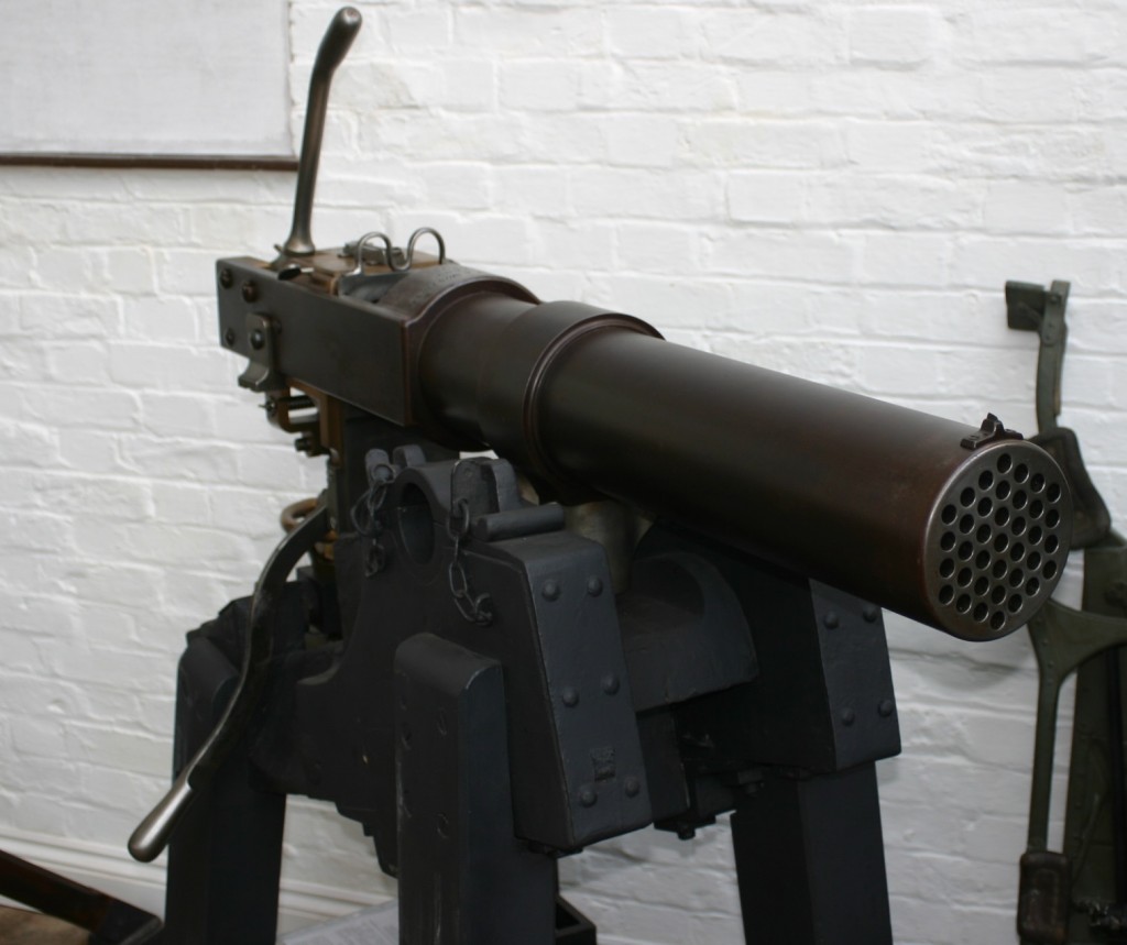 I know that the Mitrailleuse wasn’t that great, but when used properly, it would reduce incoming Prussians to LUDICROUS GIBS! The Prussian soldiers feared getting drilled by these heavy monsters and made them primary targets for snipers and artillery. As a result, I’m quite sure that Imperial Germany wanted to out-do everyone at heavy rapid-firepower, thus the scene of Kaiser Wilhelm II personally test-firing a Maxim gun and nearly wiping out his general staff in the process…