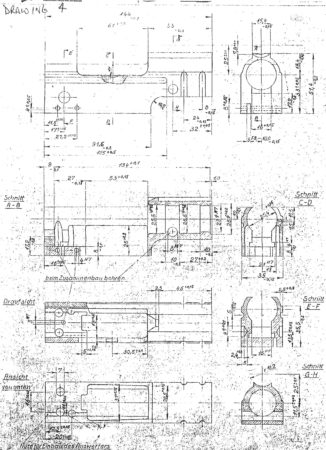 Drawing #1 shows the magazine housing in a wartime illustration of the short stroke gas piston initiated, delayed blowback Gerät 06 probably taken from an industry standard. We see from this illustration that the front of the magazine housing has a 458mm radius, and that the width of the housing tapers from 1.212in at the rear to 1.122in at the front, and that it measures 2.063in front to back. The tangent angle is 2.5 degrees over the length of the magazine housing top to bottom.