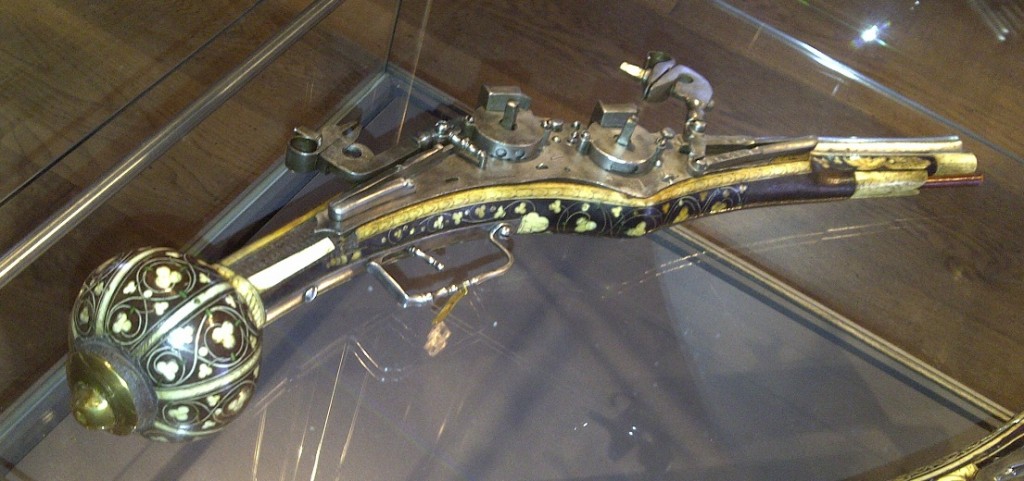 And lastly, not to ignore the Old World nature of the castle, they had a gorgeous example of a double-barrel, double-lock wheellock pistol. Top of the line weaponry, five hundred years ago!