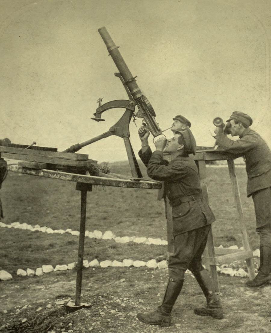 The same sort of rear spade grip was also used extensively in flexible-mount Lewis aircraft MG applications during the First World War. The ubiquitous cooling sleeve was removed and a large muzzle brake fitted for this specific purpose.