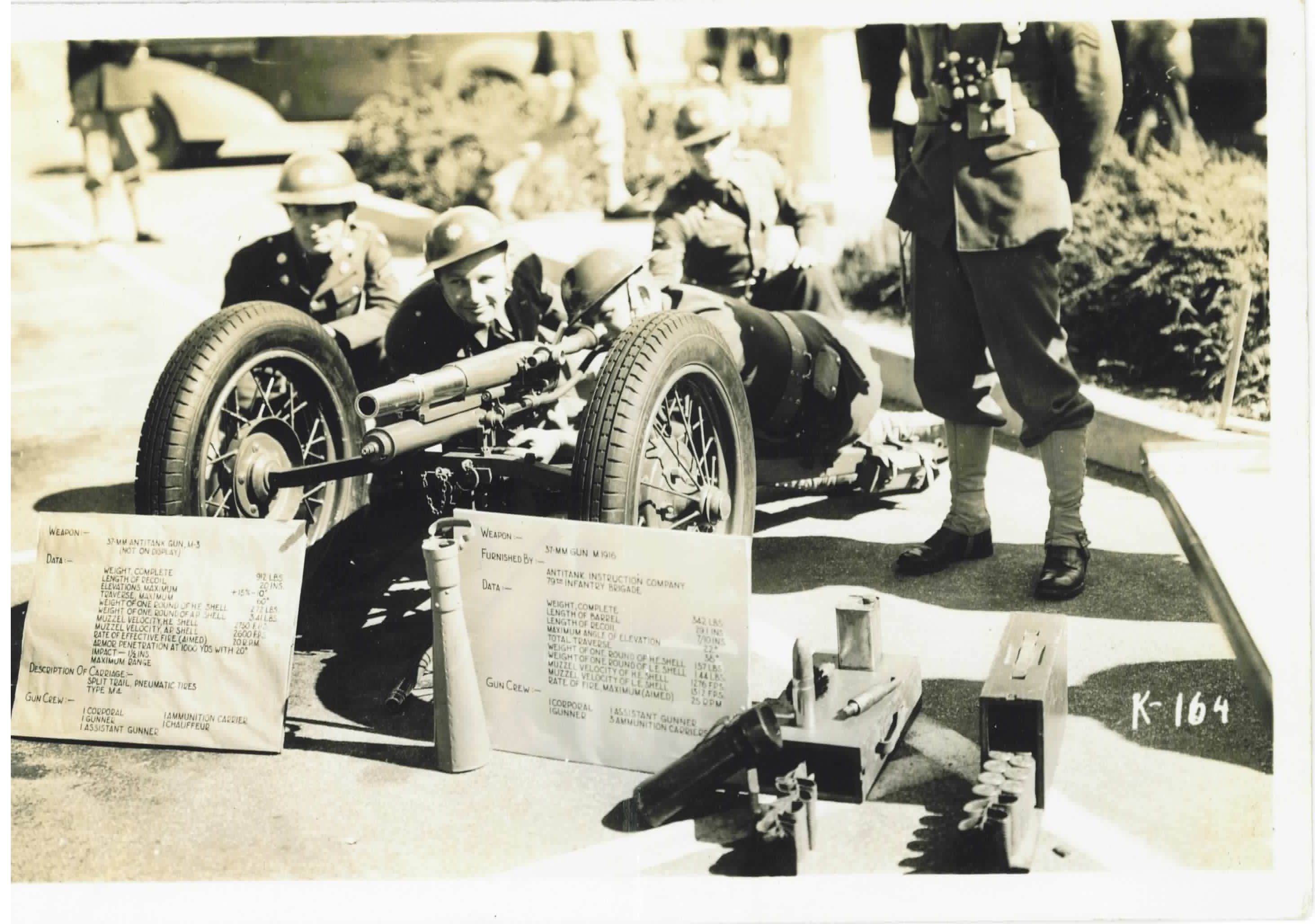 The M1916 37mm gun was developed by the French and used primarily by French and American forces in WWI for destroying machine gun emplacements. It was fairly good at this under fluid, mobile conditions, but inferior to mortars for static trench warfare. It was still in limited service by World War II, but generally relegated to training and use as a sub-caliber addition for larger guns.