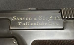 In the late 1920s, the Simson company built a handful of prototype pistols for consideration by the German military. Noises had been made about replacing the Luger with something more cost effective, and several companies moved to design options. The Simson pistol was chambered for the 9x19mm Parabellum cartridge (as the military wanted), but was a simple blowback, unlocked action. This allowed it to be cheaper to manufacture, although the military much preferred a locked action. The potential pistol replacement program quickly ended, though, with a decision to allocate funding to development of carbines and submachine guns instead.