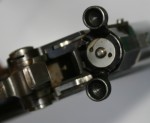 It is worth comparing the Mars to the only reasonably successful long recoil pistol, which was the Frommer 1912. In the Frommer, bolt and barrel travel back together, and the bolt is held at it rearward position while the barrel returns forwards. The empty case is ejected as the barrel pulls off it, and when the barrel is fully home is trips a release to allow the bolt to come forward, stripping a new cartridge from the magazine as it does so. The Mars prototypes initially functioned this way (including the use of a rotating bolt, with 4 lugs in the case of the Mars), but had reliability problems. The travel distance of the moving parts (the Frommer bolt and barrel travel about an inch, compared to 3-4 inches on the Mars) combined with the significant recoil of firing tended to bounce things around and led to feeding failures. The solution was twofold. First, the normal magazine was replaced by a cartridge elevator which would pull a round backwards out of the magazine during recoil and then lift is up into the path of the bolt. Secondly, the automatic bolt release was replaced by a mechanism which held the bolt open until the shooter released the trigger.