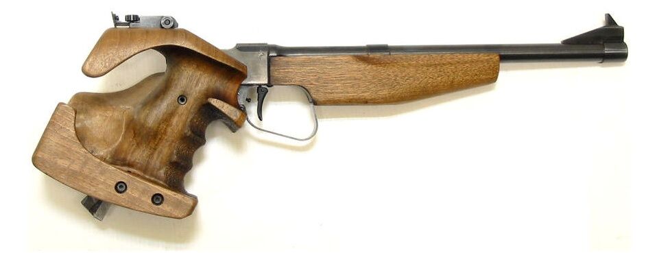 This is a great example of an interwar single-shot fancy target pistol. It is chambered for basic .22 rimfire, and uses a Martini system of dropping breechblock to operate.