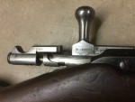 1. French Gras M14 Conversion, in 8mm Lebel. This is a Model 1874 Gras rifle that went through the 1880 updates and then was rebarreled to 8mm Lebel in 1914. These conversions were made to allow new Lebel rifles to go to the front lines, while guards and other rear line troops could be armed with the older single shot rifles, while still using the standard ammunition. This rifle also has a black enamel finish and an “N” converted chamber, indicating that it was still in military inventory in the 1930s. It appears to have been brought back from WWII by a US vet, as it has a “duffel cut” receiver (the cut is nicely hidden under the rear barrel band). Bolt and stock serial numbers match, but the barrel number does not. Bore is dark, but with strong rifling. Original holy water plug is intact in the stock, although the stock cartouche is too worn to be legible. A really cool example of WWI production desperation in the French military. Can chamber and fire Prvi Partisan 8mm Lebel, although one should exercise care, as this is still an old black powder receiver and single locking lug bolt.