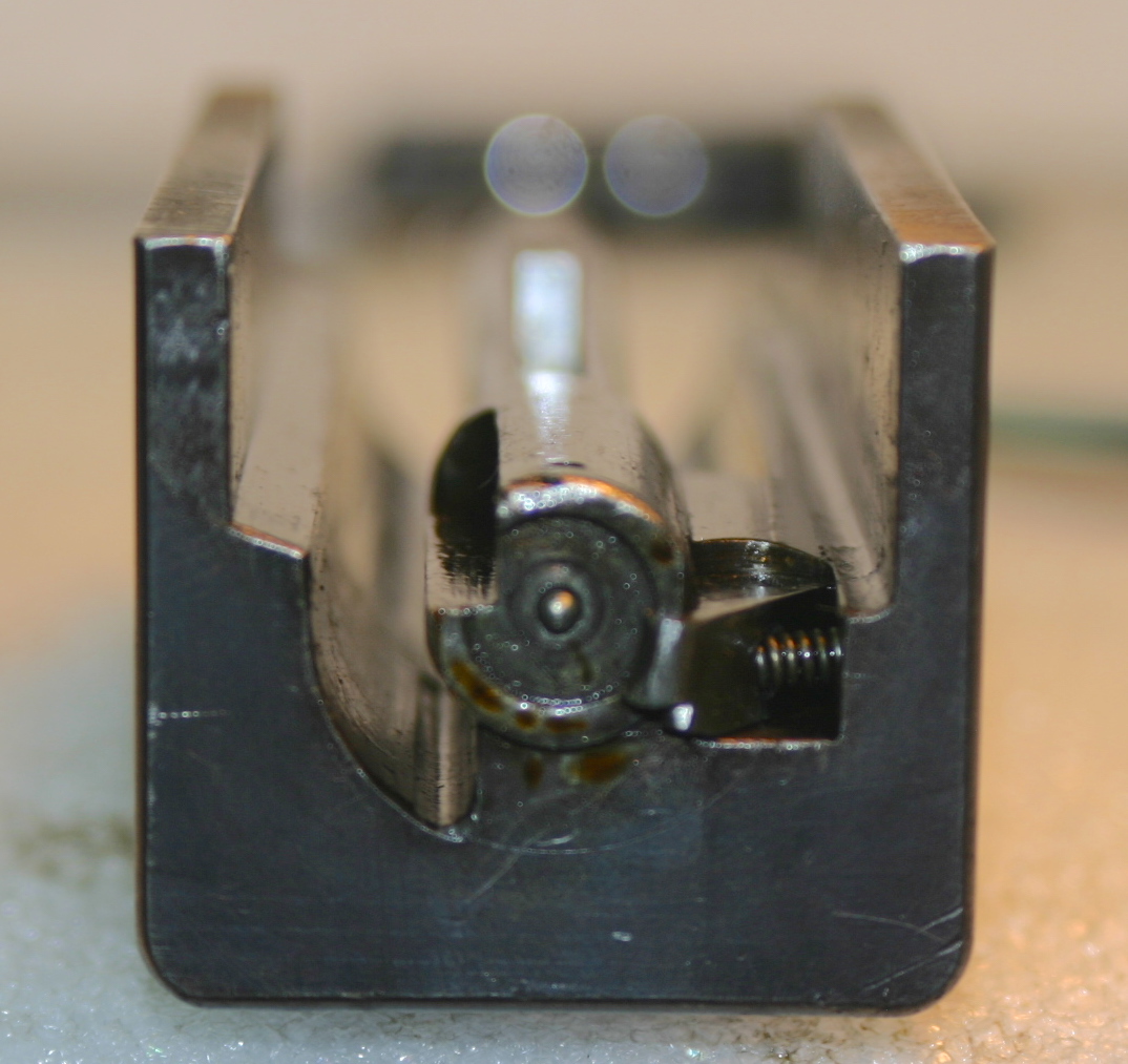 Reportedly the weapon was tested from 30 out to 200 yards and was pretty accurate (not surprising from a fixed barrel carbine, really, even though the rear sight was a simple open V notch mounted on the moving breechblock). However, it suffered from feeding and extraction problems – also not surprising for a prototype carbine converted to use a new and proprietary magazine. After those test results, no further actions were taken to develop the design. The STEN was well into mass production by this time, and there was no compelling reason to adopt a converted SMLE using a non-standard cartridge.