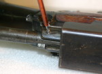 Anyway, the mechanical action of the carbine was quite simple. In place of the regular turning bolt, a heavy blowback bolt sans locking lugs was made. A tubular extension out the back of the action contained a recoil spring (rather like the Soviet DPM) and the extension locked into the rear locking lug recesses of the receiver – a clever use of those existing features. Upon firing, the heavy square breechblock assembly would simply blow backwards against the recoil spring. Its striker would reset, and be ready to fire again with another trigger pull. The prototype examples made were semiautomatic, not fully automatic.