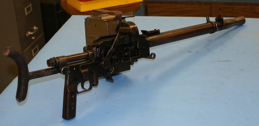 The Madsen was the first successful light machine gun, entering production in 1902. It saw much use, but was an unusual design – basically a fully automatic falling block action. It used a top mounted magazine offset to the left side of the receiver, allowing the sights to remain on the centerline of the gun. The Madsen was available in a wide variety of calibers, configurations, and barrel lengths.