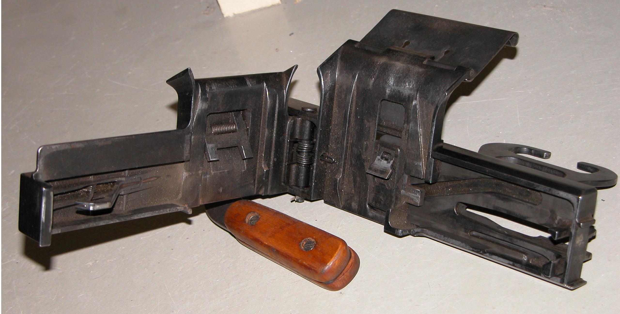 The RP46 was the final major update of the Degtyarev light machine gun, and it would be used until supplanted by the excellent PK series of guns. The RP46 was intended to improve the mobile firepower of Soviet infantry by giving them a light machine gun more capable of sustained fire. The pan magazines were replaced by a clever belt feed mechanism that attached to an existing DP’s magazine catches. It was driven by the action of the charging handle, which on a DP reciprocates with every shot.