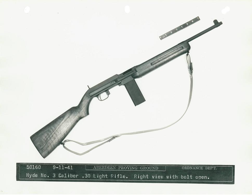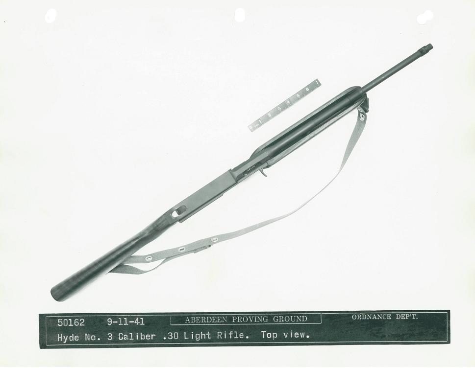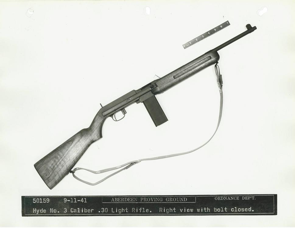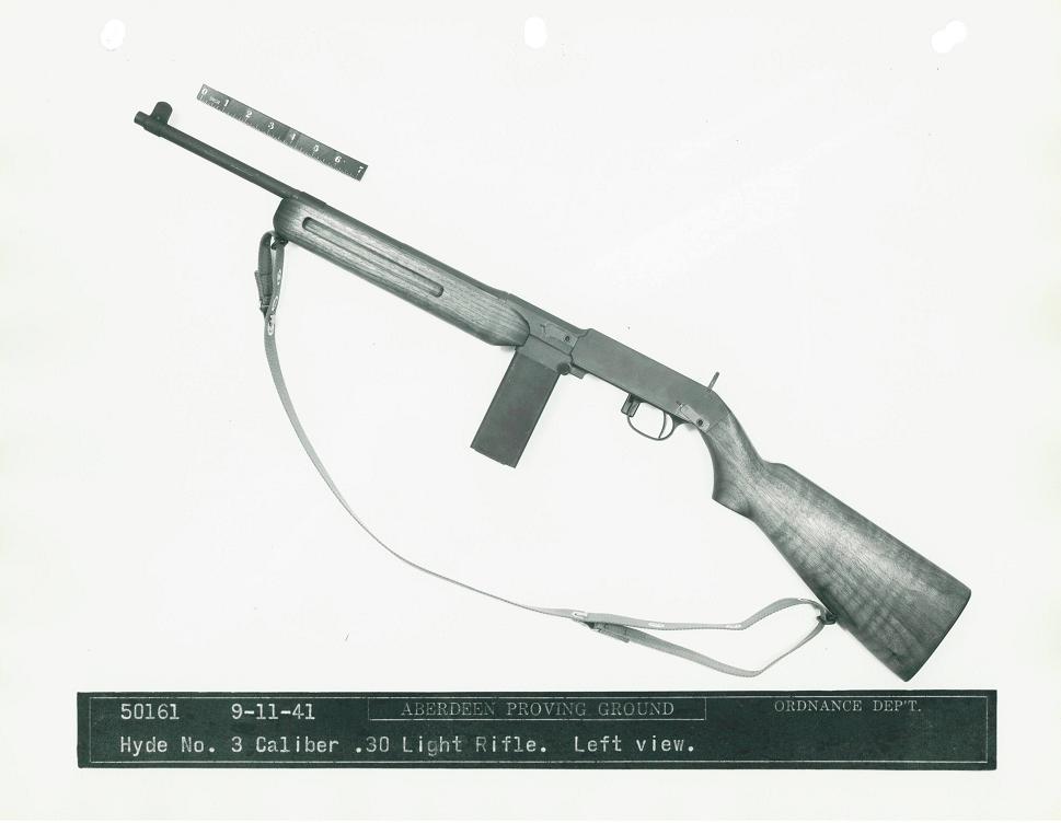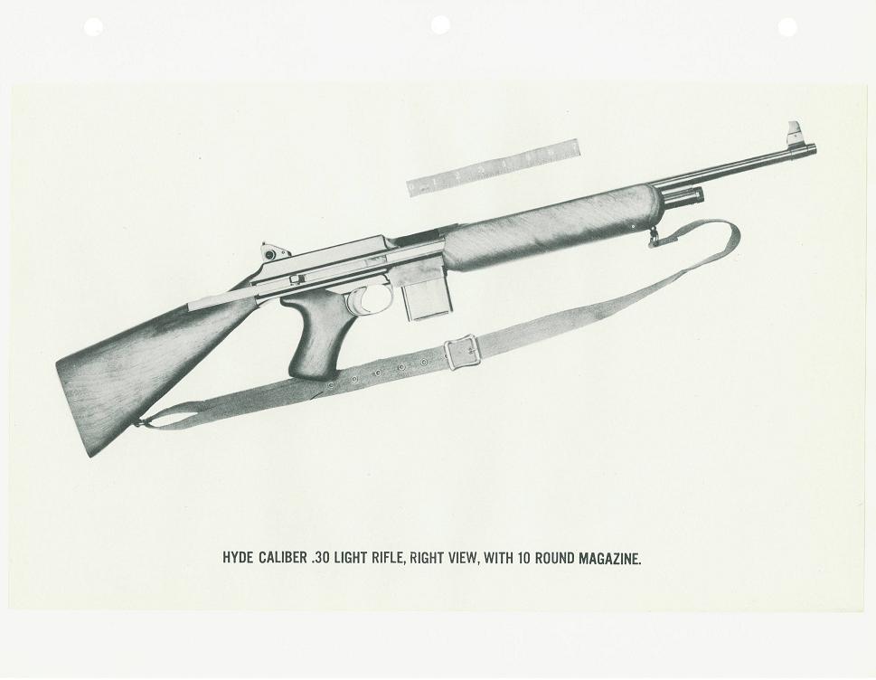 The Bendix Aviation Corporation submitted this rifle, designed by Mr. George Hyde, to the trials. It was a gas-operated design, and the only entry to use a pistol grip. Dimensions were 33.6 inches long with a 15.75 inch barrel and a weight of 5.3 pounds, including sling and 5-round magazine.