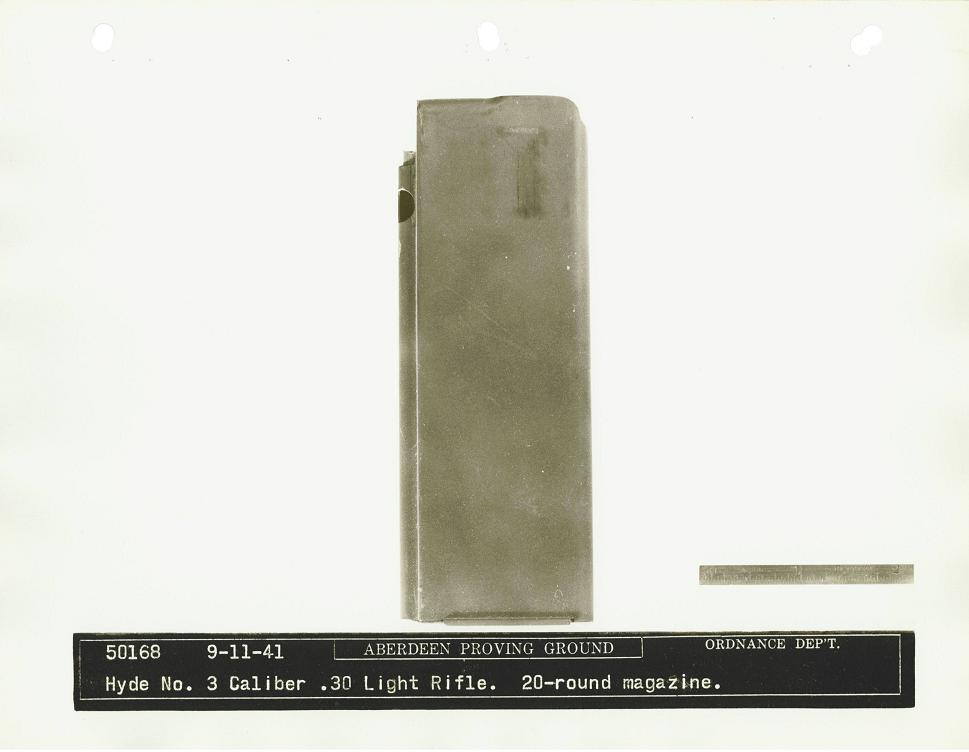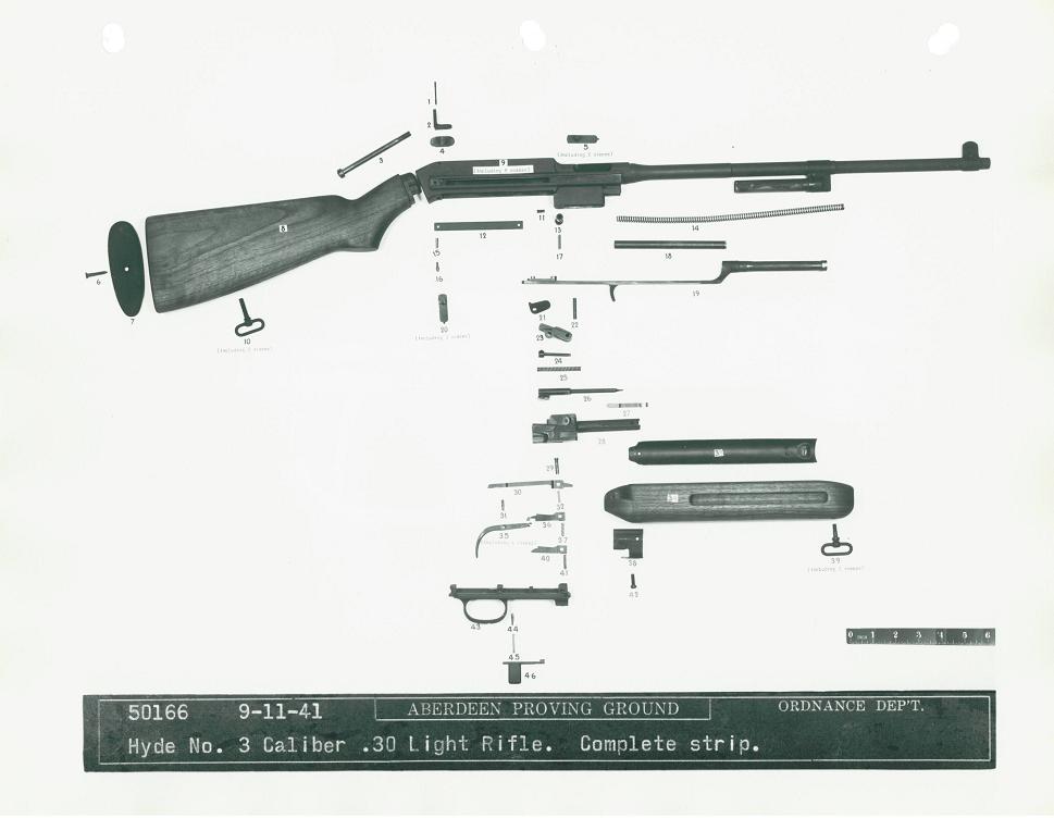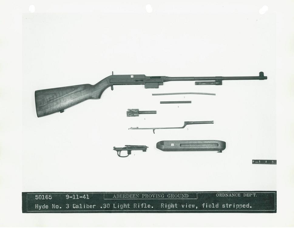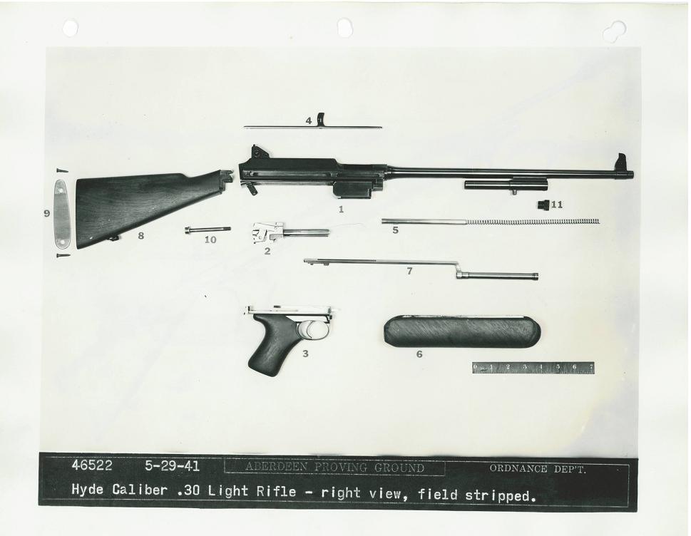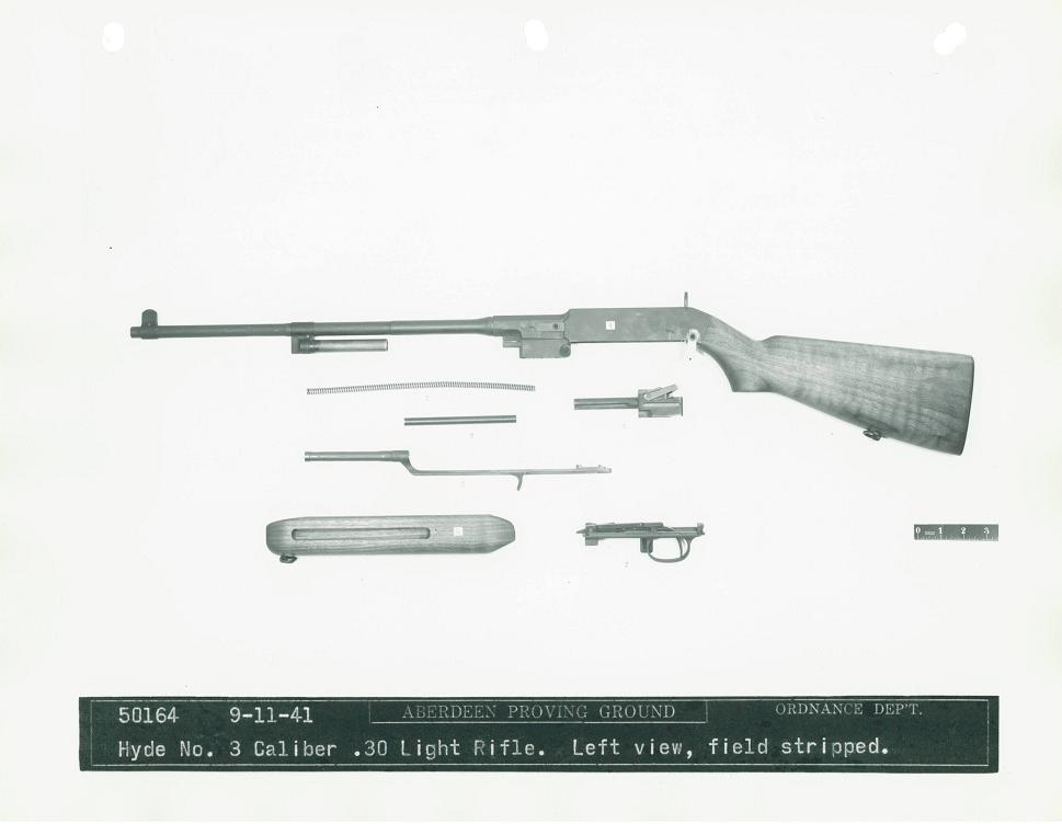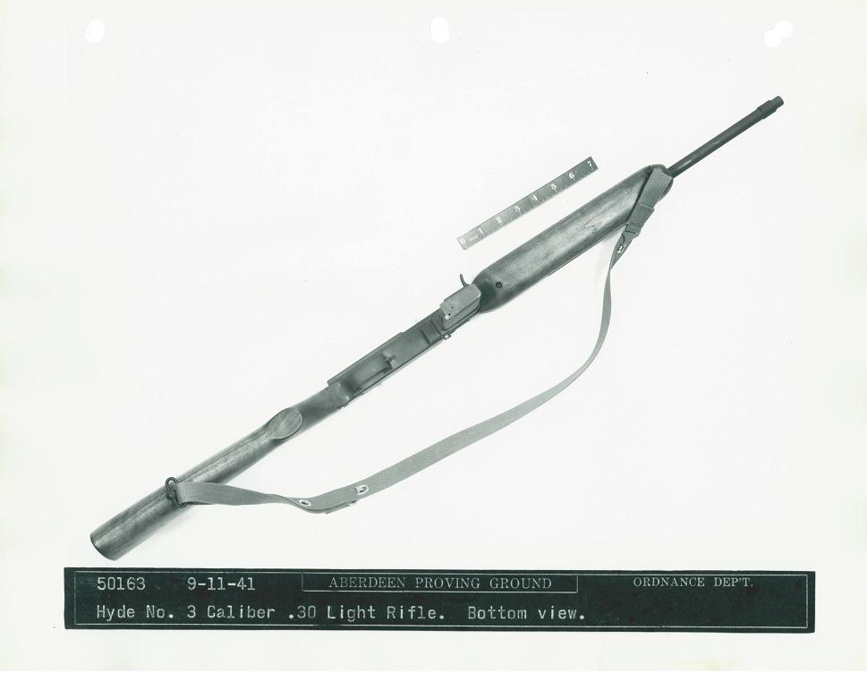 The Bendix Aviation Corporation submitted this rifle, designed by Mr. George Hyde, to the trials. It was a gas-operated design, and the only entry to use a pistol grip. Dimensions were 33.6 inches long with a 15.75 inch barrel and a weight of 5.3 pounds, including sling and 5-round magazine.