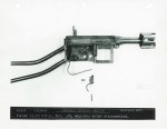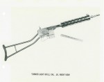 Russell Turner was a private inventor from Pennsylvania, and submitted this prototype to the Light Rifle trials in August of 1941. It was an unusual entrant in its use of a metal forearm and tubular metal stock (both of which were deemed unacceptable by the test committee). It was a gas operated design with a 3-position adjustable gas regulator and a piston running along the right side of the barrel. Full auto fire was enabled by turning the hex-head socket screw behind the trigger. It weight in at 4.5 pounds with a sling and 5-round magazine, with a 15.5 inch barrel and 33.9 inch OAL.