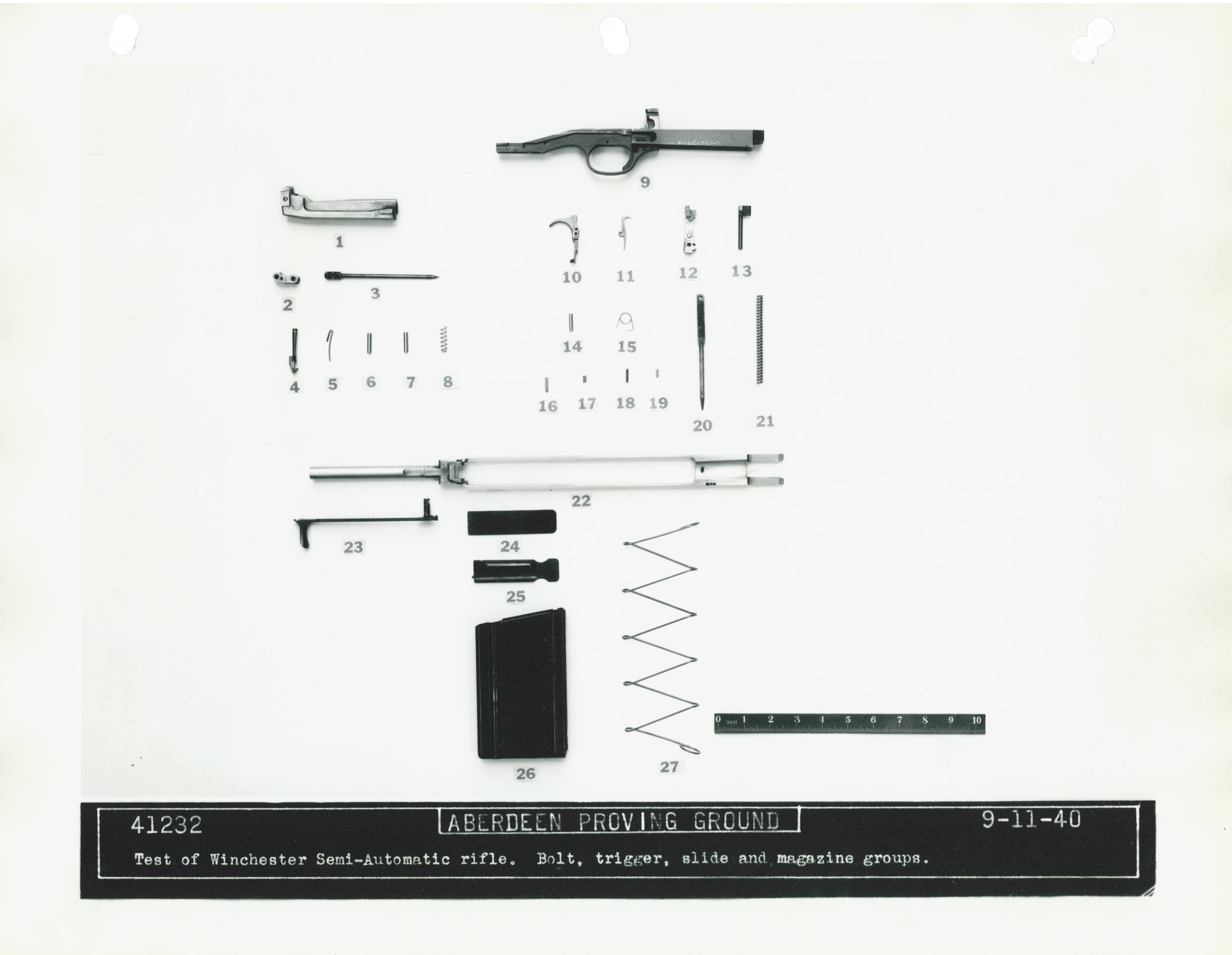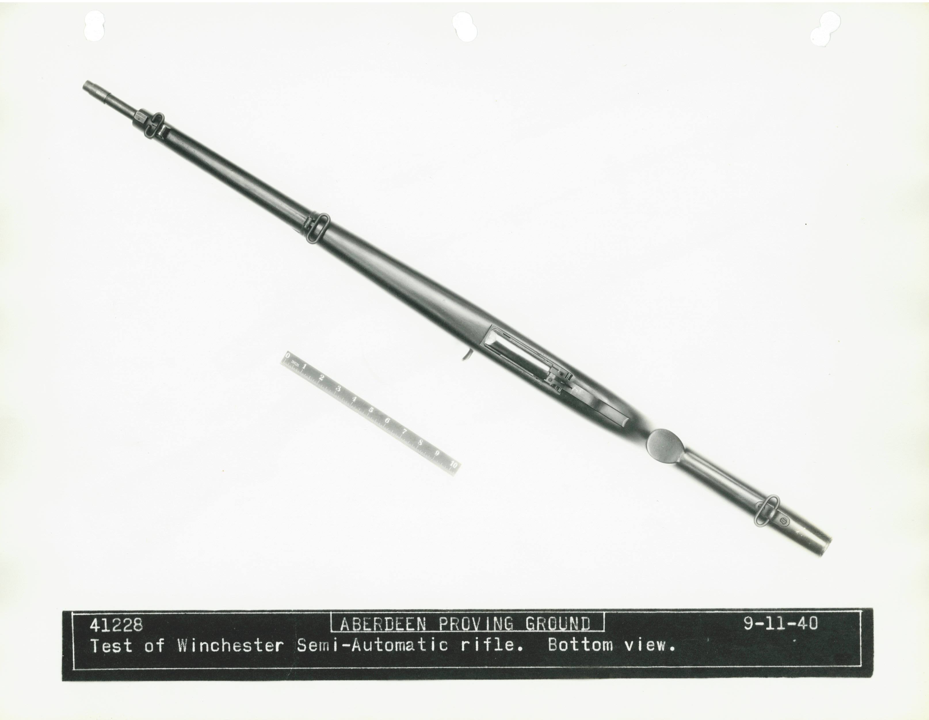 This rifle was designed by Winchester and submitted for testing by the US Marine Corps in 1940. The Marines had not adopted a semiautomatic rifle, and ran an exhaustive competitive test between the bolt-action Springfield, the Johnson, the Garand, and this Winchester design. The Winchester was a sleek and lightweight rifle, operated by a gas piston which moved only a tenth of an inch upon firing. The piston was located only a few inches forward of the breech, allowing a short and light operating system.