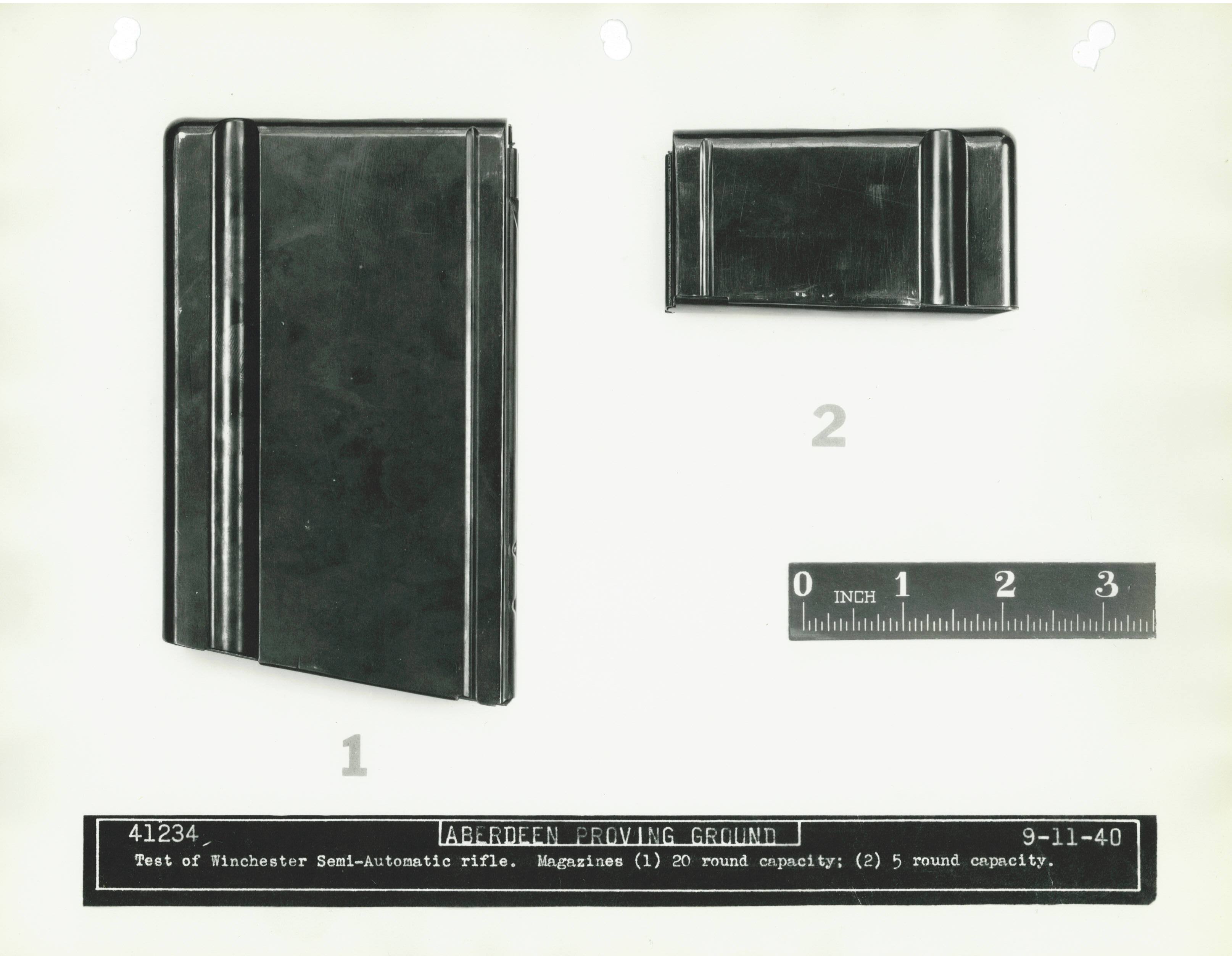 The gas system sort of looks like a scaled-up M1 carbine. But in other ways it looks like a semi-auto ’03 Springfield. The Marines put off adopting the M1 Garand and kept their Springfields for a while after the War Dept went for the M1. Wonder if some design elements were intended to be a semi-auto while being Springfield-like to appeal to the Marines? In particular: it looks like it uses 5 round stripper clips and the front sight and the rifle stock in front of the action all look like a Springfield rifle.