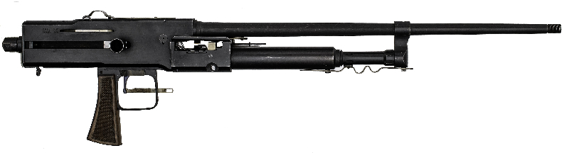 Mechanically, the Darne is a gas-operated, belt-fed, tilting bolt design. It is rather unusual in that the belt feed is located below the barrel but above the gas piston, although this configuration doesn’t appear to offer any particular advantage or disadvantage. Both cloth and disintegrating metal belts were used, with cartridges pulled rearward out of the belt pockets and then lifted up to bore level. The bolt tilts upwards to lock into a recess in the top of the receiver, much like a BAR.