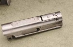 The gun is clearly a prototype, and it may not be complete. The design appears to have a gas piston mounted under the barrel, but no gas port or gas block on the barrel is evident (also, the rear sight block is not pinned in place). The bolt has a single locking lug that engages with a recess in the top of the receiver.
