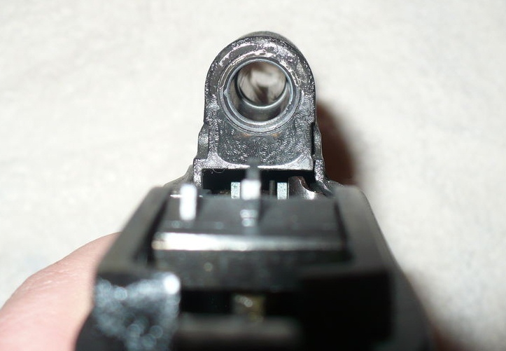 However, the DA trigger is pretty terrible and I don’t think the gas brake actually does very much, I suspect it’s really very nearly a straight blowback pistol. Recoil with most loads is quite snappy for a 9mm. Perhaps it’s very sensitive to powder burn rate.