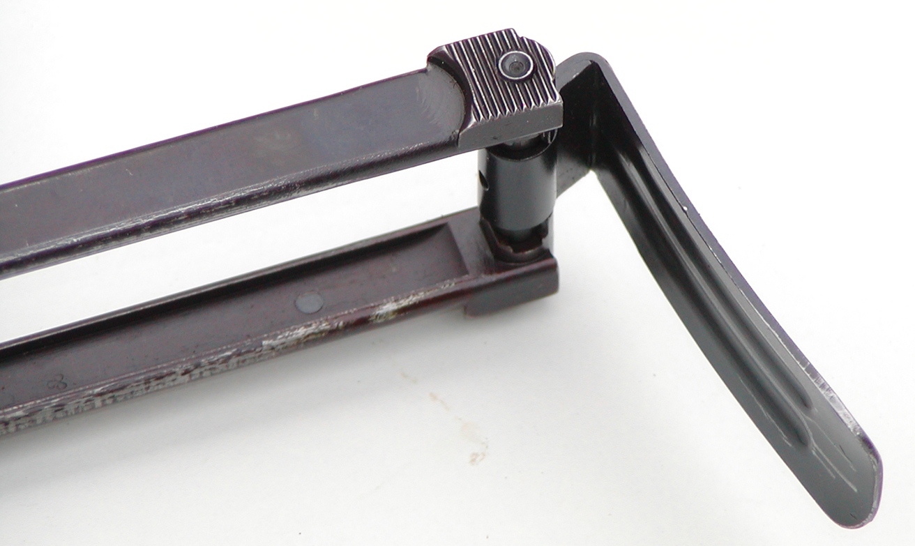 One of the most characteristic gadgets of the Rak is the folding forward grip. This is a late addition, though. At first the Rak was fitted with a wooden fore end and a under-folding metal stock with a rotating, U-shaped, arched butt-plate, somewhat reminiscent of the AKS, but narrower. The weapon could be shot with stock in one of the three positions: