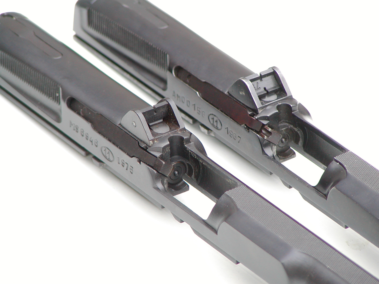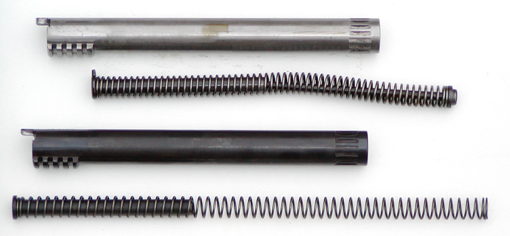Other design changes were aimed at reduction of the unit price – we already discussed the all-steel reducer weight replacing the tungsten one, but the changes also included re-design of the frame to replace the deep-drilling of the return spring channel with just milling a groove for it. The chrome-plated all over barrel of the first Raks was replaced with a blued one, retaining only the chrome-plated bore and chamber. The captive recoil spring unit, consisting of a two-piece telescoping spring rod with end-pieces holding the spring, which enabled the return unit to be detached as one piece, was replaced by a simple spring and one piece short rod.