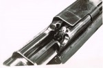 The mechanism uses two flaps on either side of the bolt which are locked and unlocked by following tracks machined into the bottom of the receiver:<a href=”https://www.forgottenweapons.com/wp-content/uploads/2012/05/trackspelo.jpg”><img title=”Pelo locking system” src=”https://www.forgottenweapons.com/wp-content/uploads/2012/05/trackspelo.jpg” alt=”Pelo locking system” width=”1115″ height=”577″ /></a>