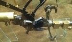 It seems the tubular handle connected with pendulum in its front with a amortiseur like engagement works as an “Action Starter/Stopper”. Its motional arc is shorter than pendulum and can be held firmly through firing.