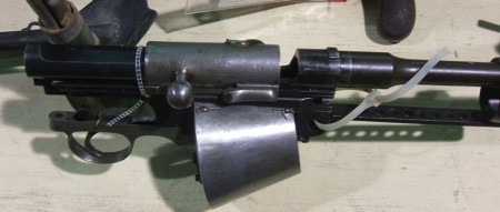 Yep, that is a partial Farquhar-Hill rifle that was for sale, until it came home with us. It’s missing the bolt, furniture, and gas system (plus a couple FCG parts, I think), but I doubt we’ll ever have another chance to get one. The receiver, trigger, and bolt cover have matching numbers, but several of the other small parts have different numbers – our working theory is that it was either an unfinished factory gun or a set of parts put aside by one of the employees building the guns originally. We will be fabricating the missing parts, and it will live again!