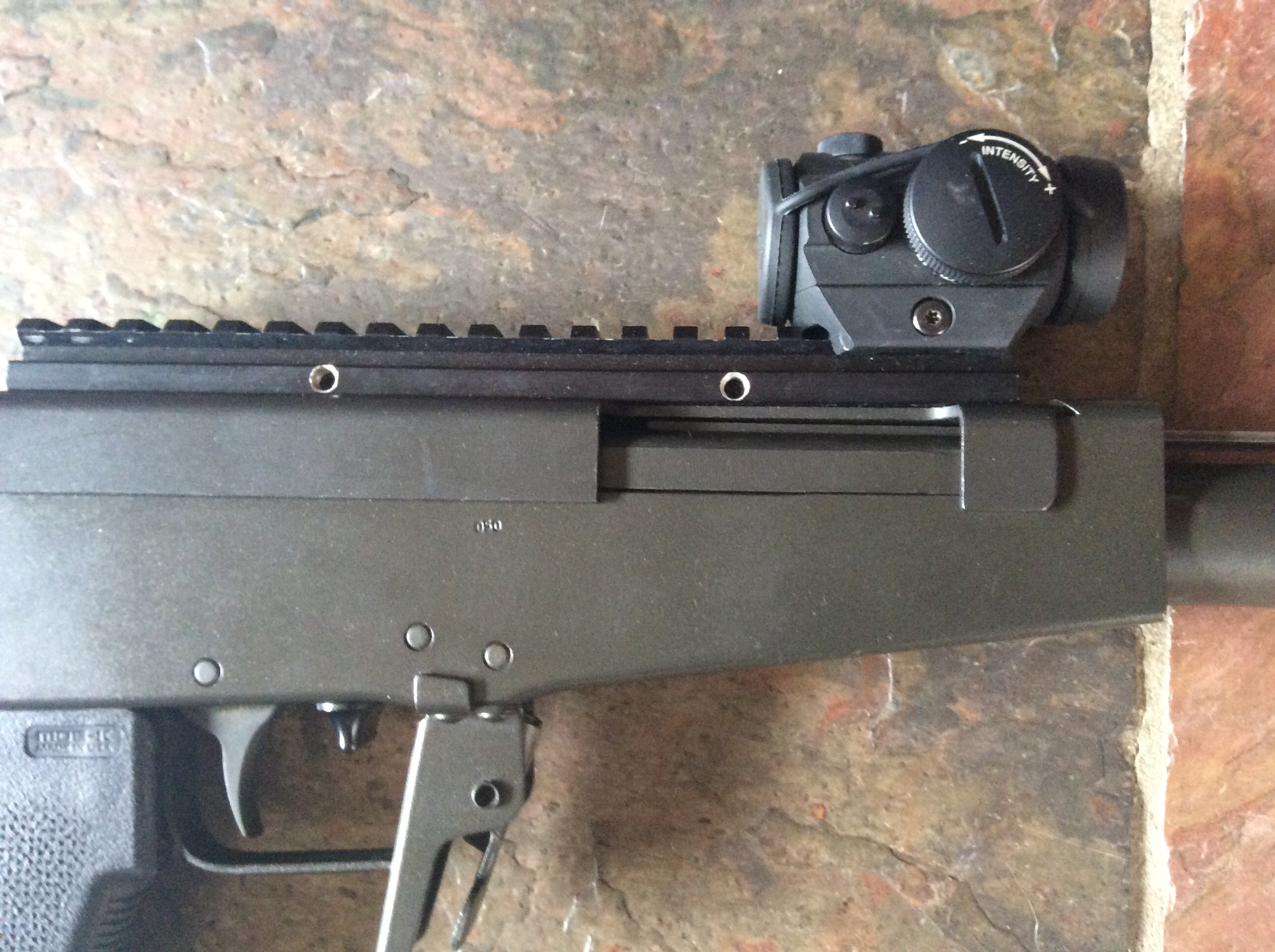 I used to have one of these when I lived in South Africa. You can’t slam fire it- the trigger has a disconnector. The trigger is pure Galil/ AK- rough and heavy. There is a return spring in the forearm that surrounds the barrel, so you only pull back. Mine had a folding stock and a plastuc firearm, it was a bit more tacti-cool than the rifle in the photo. The barrels were of good quality- about a 2 MOA rifle despite that trigger. You’d need 5.56 Galil magazines if you ever came across one.