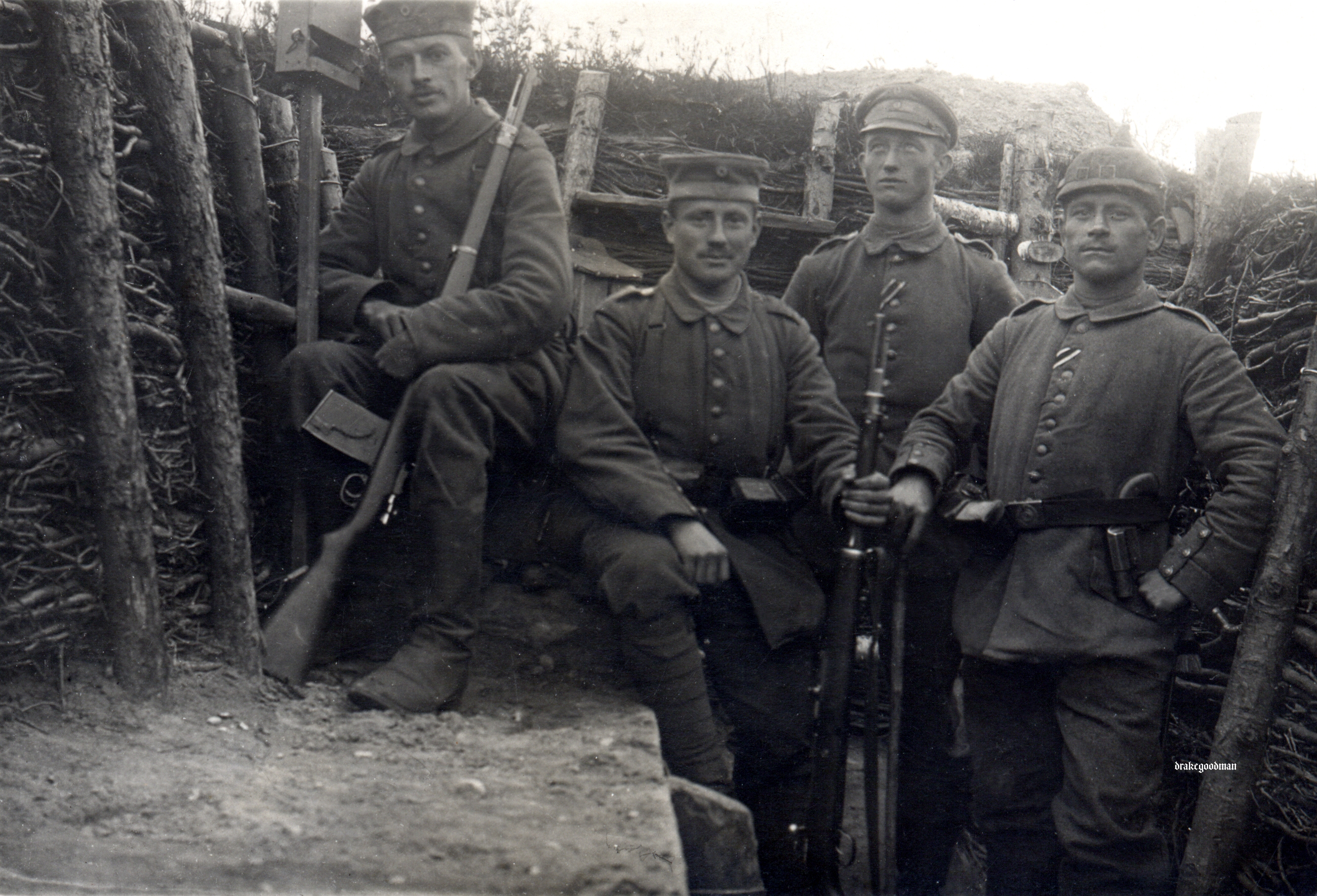 On a slightly more light-hearted note ( in spite of the obvious and terrible nature of trench warfare during that period ), the third young fellow from the left has an expression on his face that seems to say, “Oh God, here we go again” ( although I am sure the photographer just happened to catch him at the wrong moment when they were posing for the shot ) :).